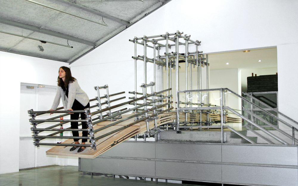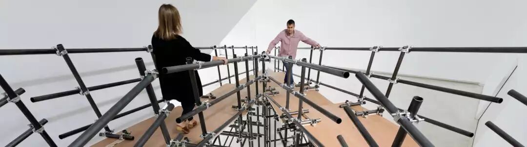 “我的布宜诺斯艾利斯,La Maison Rouge”,Metasbilad,2015,酚醛板,金属管和脚手架夹,在巴黎Antoine de Galbert基金会的安装视图。感谢艺术家露西安娜·拉莫特(Luciana Lamothe)提供图片。
