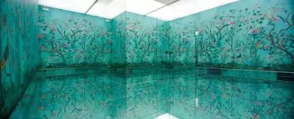 当时的这个绿色展厅简直刷爆微博票圈,地面跟一面墙都是镜子,可以拍出各个角度的自己。