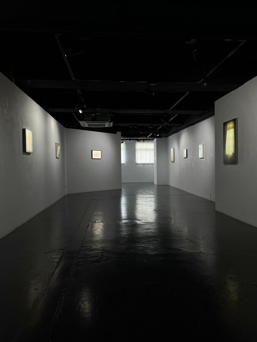 Kan Kin Kin seeks to understand the structure and emotional tension of this experience through painting. He renders a series of interior scenes and still lifes in oil. The reference images are first printed on a home printer into rough, distorted versions, then transferred onto canvas with soft, barely discernible brushstrokes. This process softens the originally sharp outlines, forming planar spaces imbued with feeling and evoking an atmosphere at once intimate and alienating.